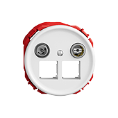 STANDARDdue (SNAPFIX) • EASYNET Multimediadose 5-2000 MHz • Durchgangsdose/Enddose • Für zwei RJ45-Anschlussmodule S-One • Frontscheibe 60 mm, für Bohrung 58 mm • Dämpfung 19 dB • SNAPFIX® Befestigungssystem