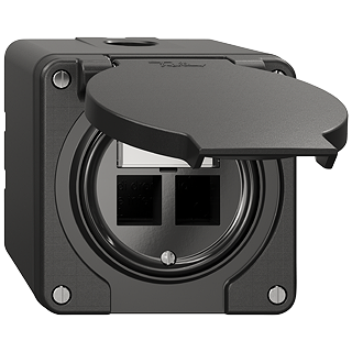 Montageset Keystone • Für gerade Steckrichtung • Frontscheibe 60 mm, für Bohrung 60 mm • Mit Papiereinlage • Zweifach • Anbauhöhe 70 mm • NAP.Q • schwarz • IP55 • 87 x 87 mm • Schlagfestigkeit: IK07
