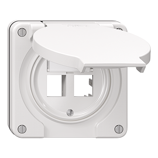 Montageset Kat. 5e/6 • Für R&M freenet Anschlussmodul Kat. 5e/6, mit Trägerplatte • Gerade Steckrichtung • Frontscheibe 60 mm, für Bohrung 58 mm • Zweifach • Q • weiss |