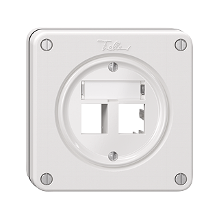 Montageset Kat. 5e/6 • Für R&M freenet Anschlussmodul Kat. 5e/6, mit Trägerplatte • Gerade Steckrichtung • Frontscheibe 60 mm, für Bohrung 58 mm • Zweifach • Q • weiss |