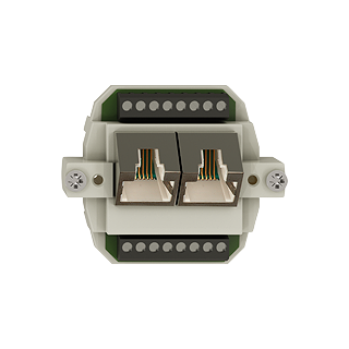 RJ45-Dose ITplus® • Zweifach, geschirmt • getrennt • Schrägauslass • Mit Schraubklemmen • 8-polig • Einbautiefe 25 mm • BSE • farbneutral • IP20 • Befestigungsdistanz 52 mm