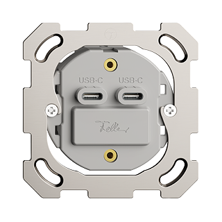 USB-Ladesteckdose • 230 V AC • Ausgangsleistung 18 W • Es können bis zu 2 Geräte parallel angeschlossen werden • Leistungsaufnahme (Standby) max. 100 mW • Überlastsicher und kurzschlussfest • 2 USB-Anschlüsse Typ C • Ausgangsspannung 5-12 V DC • Mit Steckklemmen • Einbautiefe 41 mm • BSM • farbneutral • IP20 • 77 x 77 mm