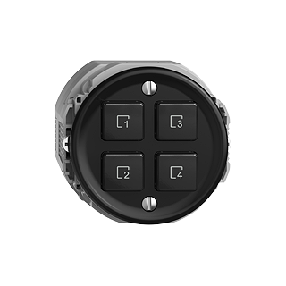 Wiser Szenentaster 4 Szenen • Leistungslos, 230 V AC • Zusätzliche Bedienstelle zur Steuerung einer Wiser Anlage, flexibel verknüpfbar • Die Szenentaste ermöglicht das Speichern und Abrufen von Szenen • Mit Steckklemmen • Beleuchtbar mit integrierter LED • 4 Tasten • Frontscheibe 53 mm, für Bohrung 50 mm • Einbautiefe 36 mm • Q • schwarz • IP20 • Befestigungsdistanz 52 mm