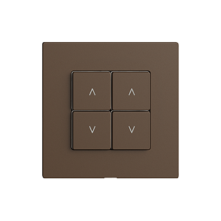 Wiser Storenschalter 2-Kanal • 4 Schaltkontakte, je 2 A, 230 V AC • Für 2 Antriebe bis 460 VA mit Endschalter (Rolladen, Storen, Lamellenstoren, Markise) • Mit Steckklemmen • Beleuchtbar mit integrierter LED • 4 Tasten • Einbautiefe 36 mm • F • coffee • IP20 • 60 x 60 mm