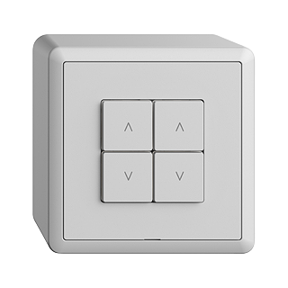 Wiser Storenschalter 2-Kanal WLAN Gen.B • 4 Schaltkontakte, je 2 A, 230 V AC • Ermöglicht das Einbinden der kompletten Wiser Anlage in ein WLAN-Heimnetzwerk per App • Für 2 Antriebe bis 460 VA mit Endschalter (Rolladen, Storen, Lamellenstoren, Markise) • Mit Steckklemmen • Beleuchtbar mit integrierter LED • 4 Tasten • Anbauhöhe 54 mm • FX.54 • hellgrau • IP20 • 74 x 74 mm