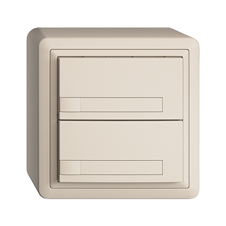 EDIZIOdue colore • UNI-Taster • Seriell, mit Protokoll • 5 V DC • Steckverbinder • Ohne LED • Mit Papiereinlage • Zweifach-Taste • 1-Tastenbedienung • Anbauhöhe 59 mm • FX.54 • crema • IP20 • 74 x 74 mm