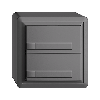 EDIZIOdue colore • UNI-Taster • Seriell, mit Protokoll • 5 V DC • Steckverbinder • Ohne LED • Mit Papiereinlage • Zweifach-Taste • 1-Tastenbedienung • Anbauhöhe 59 mm • FX.54 • dunkelgrau • IP20 • 74 x 74 mm