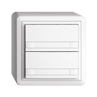 EDIZIOdue colore • Poussoir UNI • Sériel, avec protocole • 5 V DC • Connecteur enfichable • Sans LED • Avec étiquette en papier • Touche double • Commande à 2 touches • Hauteur 59 mm • FX.54 • blanc • IP20 • 74 x 74 mm