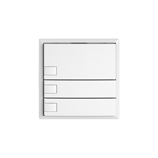 EDIZIO.liv • UNI-Taster • Seriell, mit Protokoll • 5 V DC • Steckverbinder • Ohne LED • Dreifach-Taste • 1-Tastenbedienung • SNAPFIX® Befestigungssystem • Einbautiefe 17 mm • G.A • weiss • IP20 • 60 x 60 mm