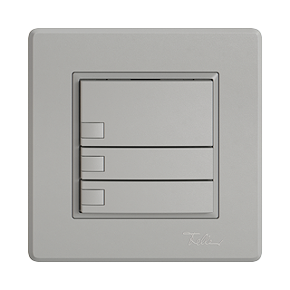 EDIZIO.liv • UNI-Taster • Seriell, mit Protokoll • 5 V DC • Steckverbinder • SNAPFIX® Befestigungssystem • Ohne LED • Dreifach-Taste • 1-Tastenbedienung • Einbautiefe 17 mm • GMI.A • hellgrau • IP20 • 96 x 96 mm (93 x 93 mm)