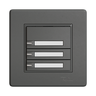 EDIZIO.liv • UNI-Taster • Seriell, mit Protokoll • 5 V DC • Steckverbinder • SNAPFIX® Befestigungssystem • Mit LED Rot, Grün, Blau • Mit Papiereinlage • Dreifach-Taste • 1-Tastenbedienung • Einbautiefe 17 mm • GMI.A • dunkelgrau • IP20 • 96 x 96 mm (93 x 93 mm)