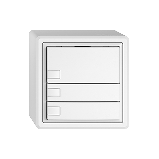 EDIZIO.liv • UNI-Taster • Seriell, mit Protokoll • 5 V DC • Steckverbinder • Ohne LED • Dreifach-Taste • 1-Tastenbedienung • SNAPFIX® Befestigungssystem • Anbauhöhe 59 mm • GX.54.A • weiss • IP20 • 74 x 74 mm
