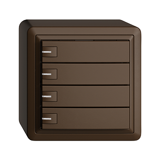 EDIZIOdue colore •  UNI-Taster •  Seriell, mit Protokoll •  5 V DC •  Steckverbinder •  Mit LED Rot, Grün, Blau •  Vierfach-Taste •  1-Tastenbedienung •  Anbauhöhe 59 mm •  FX.54 •  coffee •  IP20 •  74 x 74 mm
