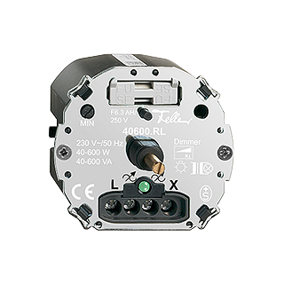 Drehdimmer Phasenanschnitt • 230 V AC, 50 Hz • Für Glüh- und Niedervolthalogenlampen • 40-600 W ohmisch, 40-600 VA induktiv • BSE