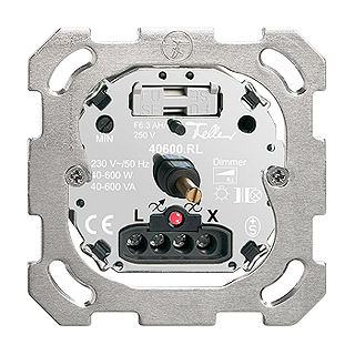 Drehdimmer Phasenanschnitt • 230 V AC, 50 Hz • Für Glüh- und Niedervolthalogenlampen • 40-600 W ohmisch, 40-600 VA induktiv • BSE