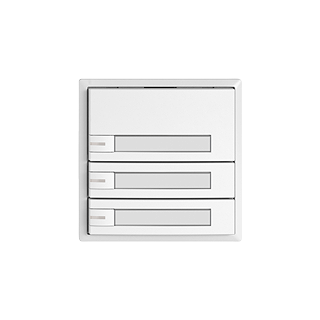 EDIZIO.liv • Pulsante KNX RGB • 21-30 V DC SELV • Fabbisogno di base mass. 250 mW • Morsetto di collegamento bus KNX • Con accoppiatore bus KNX Secure • Consiste in unità funzionale con fino a otto possibili assegnazioni di tasti • Con sensore temperatura • Sistema de fissagio SNAPFIX® • Con RGB LED rosso, verde, blu, bianco, giallo, vialo e 2 colori liberamente definibili dall'utente • Potenza supplementare per ogni LED mass. 10 mW • Con targhetta • Tasto triplo • Comando a 1 tasto • Profondità 22 mm • G.A • bianco • IP20 • 60 x 60 mm