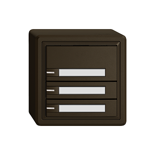 EDIZIO.liv • KNX-Taster RGB • 21-30 V DC SELV • Grundbedarf max. 250 mW • KNX-Busanschlussklemme • Inklusive KNX Secure Busankoppler • Besteht aus Funktionseinsatz mit bis zu acht möglichen Tastenbelegungen • Mit Temperaturfühler • SNAPFIX® Befestigungssystem • Mit RGB-LED rot, grün, blau, weiss, gelb, volett, und 2 frei definierbaren Anwenderfarben • Zusätzliche Leistung pro LED max. 10 mW • Mit Papiereinlage • Dreifach-Taste • 1-Tastenbedienung • Anbauhöhe 59 mm • GX.54.A • umbra • IP20 • 74 x 74 mm
