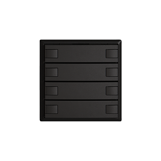 EDIZIO.liv • KNX-Taster RGB • 21-30 V DC SELV • Grundbedarf max. 250 mW • KNX-Busanschlussklemme • Inklusive KNX Secure Busankoppler • Besteht aus Funktionseinsatz mit bis zu acht möglichen Tastenbelegungen • Mit Temperaturfühler • SNAPFIX® Befestigungssystem • Ohne LED • Vierfach-Taste • 2-Tastenbedienung • Einbautiefe 22 mm • G.A • schwarz • IP20 • 60 x 60 mm