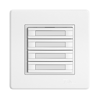 EDIZIO.liv • Poussoir KNX RGB • 21-30 V DC SELV • Absorbation de base 250 mW max. • Borne de raccordement bus KNX • Avec coupleur de bus KNX Secure • Se compose de unité fonctionnelle avec jusqu'à huit configurations de touches possibles • Avec capteur de température • Système de fixation SNAPFIX® • Sans LED • Avec étiquette en papier • Touche quadruple • Commande à 2 touches • Profondeur 22 mm • GMI.A • blanc • IP20 • 96 x 96 mm (93 x 93 mm)