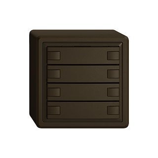 EDIZIO.liv • KNX-Taster RGB • 21-30 V DC SELV • Grundbedarf max. 250 mW • KNX-Busanschlussklemme • Inklusive KNX Secure Busankoppler • Besteht aus Funktionseinsatz mit bis zu acht möglichen Tastenbelegungen • Mit Temperaturfühler • SNAPFIX® Befestigungssystem • Ohne LED • Vierfach-Taste • 2-Tastenbedienung • Anbauhöhe 44 mm • GX.54.A • umbra • IP20 • 74 x 74 mm