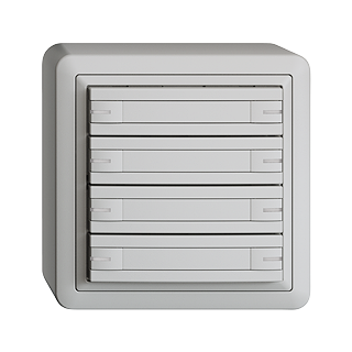 EDIZIOdue colore • KNX-Taster RGB • KNX Secure fähig • 21-30 V DC SELV • Grundbedarf max. 250 mW • KNX-Busanschlussklemme • Inklusive KNX Secure Busankoppler • Besteht aus Funktionseinsatz mit bis zu acht möglichen Tastenbelegungen • Mit Temperaturfühler • Mit RGB-LED rot, grün, blau, weiss, gelb, volett, und 2 frei definierbaren Anwenderfarben • Zusätzliche Leistung pro LED max. 10 mW • Mit Papiereinlage • Achtfach-Taste • 1-Tastenbedienung • Anbauhöhe 44 mm • FX.39 • hellgrau • IP20 • 74 x 74 mm
