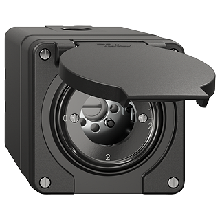 Drehschalter • Für Sicherheitsschloss, ohne Zylinder • 16 A, 240/400 V AC • Mit Schraubklemmen • LED-Last max: 200 W • Frontscheibe 60 mm, für Bohrung 60 mm • Serieschalter • 1/1 L • KS 0 - 1 - 1+2 - 2 • Anbauhöhe 93 mm • NAP.Q • schwarz • IP55 • 87 x 87 mm • Schlagfestigkeit: IK07