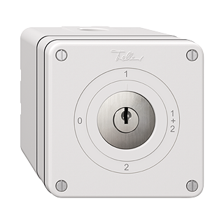 Drehschalter • Mit Sicherheitsschloss und 2 Schlüsseln • 16 A, 240/400 V AC • Mit Schraubklemmen • LED-Last max: 200 W • Serieschalter • 1/1 L • KS 0 - 1 - 1+2 - 2 • Anbauhöhe 87 mm • NAPU.Q • weiss • IP21 • 87 x 87 mm • 4 Abzugsstellungen
