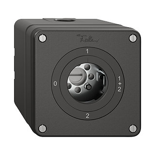 Drehschalter • Für Sicherheitsschloss, ohne Zylinder • 16 A, 240/400 V AC • Mit Schraubklemmen • LED-Last max: 200 W • Serieschalter • 1/1 L • KS 0 - 1 - 1+2 - 2 • Anbauhöhe 87 mm • NAPU.Q • schwarz • IP21 • 87 x 87 mm