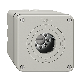 Drehschalter • Für Sicherheitsschloss, ohne Zylinder • 16 A, 240/400 V AC • Mit Schraubklemmen • LED-Last max: 200 W • Serieschalter • 1/1 L • KS 0 - 1 - 1+2 - 2 • Anbauhöhe 87 mm • NAPU.Q • lichtgrau • IP21 • 87 x 87 mm