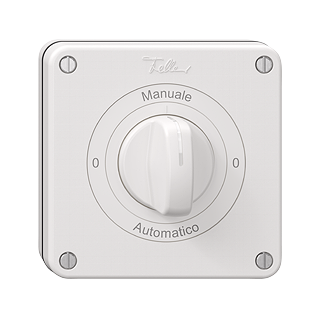Drehschalter • Mit Drehgriff • 16 A, 240/400 V AC • Mit Schraubklemmen • LED-Last max: 200 W • Umschalter • 2/1 L • KS 0 - Manuale - 0 - Automatico • Einbautiefe 24 mm • NUP.Q • weiss • IP55 • 87 x 87 mm • Schlagfestigkeit: IK02