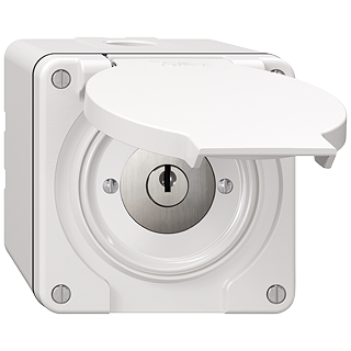 Schwenktaster • Öffner-Schliesser • 1 L • Mit Sicherheitsschloss und 2 Schlüsseln • Frontscheibe 60 mm, für Bohrung 58 mm • Q • weiss