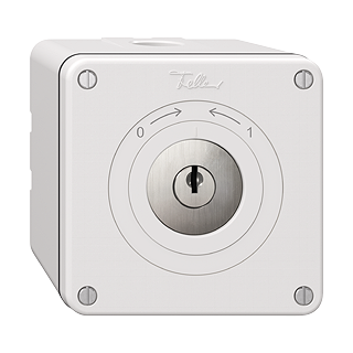Schwenktaster • Mit Sicherheitsschloss und 2 Schlüsseln • Mit beidseitigem Rückzug • Öffner-Schliesser • 1 L • NU.CO.Q • weiss