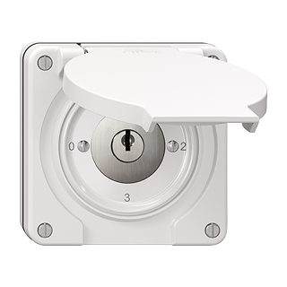 Drehschalter • Mit Sicherheitsschloss und 2 Schlüsseln • 16 A, 240/400 V AC • Mit Schraubklemmen • LED-Last max: 200 W • Frontscheibe 60 mm, für Bohrung 60 mm • Mehrfachumschalter • 5/1 L • KS 0 - 1 - 2 -3 • Einbautiefe 53 mm • NUP.Q • weiss • IP55 • 87 x 87 mm • Schlagfestigkeit: IK07 • 4 Abzugsstellungen