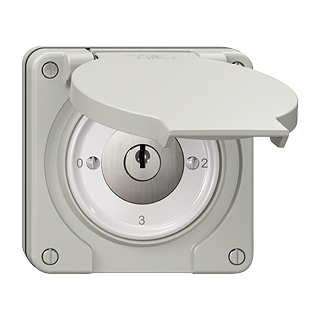 Drehschalter • Mit Sicherheitsschloss und 2 Schlüsseln • 16 A, 240/400 V AC • Mit Schraubklemmen • LED-Last max: 200 W • Frontscheibe 60 mm, für Bohrung 60 mm • Mehrfachumschalter • 5/1 L • KS 0 - 1 - 2 -3 • Einbautiefe 53 mm • NUP.Q • lichtgrau • IP55 • 87 x 87 mm • Schlagfestigkeit: IK07 • 4 Abzugsstellungen