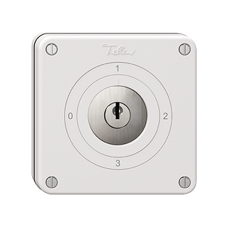 Drehschalter • Mit Sicherheitsschloss und 2 Schlüsseln • 16 A, 240/400 V AC • Mit Schraubklemmen • LED-Last max: 200 W • Mehrfachumschalter • 5/1 L • KS 0 - 1 - 2 -3 • Einbautiefe 40 mm • NUPU.Q • weiss • IP21 • 87 x 87 mm • Schlagfestigkeit: IK02 • 4 Abzugsstellungen