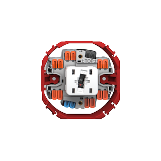 Druckschalter • Beleuchtet • 16 A, 230 V AC • Mit Steckklemmen • LED-Last max: 200 W • Kreuz • 6/1 L • Mit LED Rot 1,0 mA • Orientierungs- oder Kontrollbeleuchtung • SNAPFIX® Befestigungssystem • Einbautiefe 27 mm • BAE • farbneutral • IP20