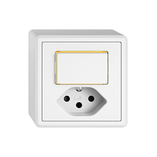EDIZIO.liv • Piccola combinazione • Illuminato • Con lente laterale • Con pulsante e presa tipo 13 • 10 A, 250 V AC, L + N + PE • Con morsetti a innesto • Chiusura-apertura • 1 L • Con otturatore • Con LED giallo 1,0 mA • Illuminazione d'orientamento • Sistema de fissagio SNAPFIX® • Altezza 58 mm • GX.54.A • bianco • IP20 • 74 x 74 mm