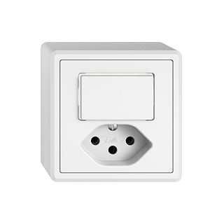 EDIZIO.liv •  Piccola combinazione •  Illuminato •  Con lente laterale •  Con interruttore e presa tipo 13 •  10 A, 250 V AC, L + N + PE •  Con morsetti a innesto •  Carico LED max: 100 W •  Spento/invertitore •  3/1 L •  Con LED bianco 1,0 mA •  Illuminazione d'orientamento •  Sistema de fissagio SNAPFIX® •  Altezza 58 mm •  GX.54.A •  bianco •  IP20 •  74 x 74 mm