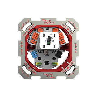 Das zweistufige Befestigungssystem Feller SNAPFIX® reduziert die Planungs-, Bestellund Installationsarbeit dank einem symmetrischen Einheitsausschnitt in der Befestigungsplatte und dem roten Adapter am Funktionseinsatz. Dieser wird in die Befestigungsplatte eingeschnappt (SNAP) und anschliessend werden die vier Schnapper an den Ecken mit dem Schraubenzieher Nr. 2 fixiert (FIX). Feller SNAPFIX® ist modular aufgebaut und funktioniert für alle Feller Funktionen.