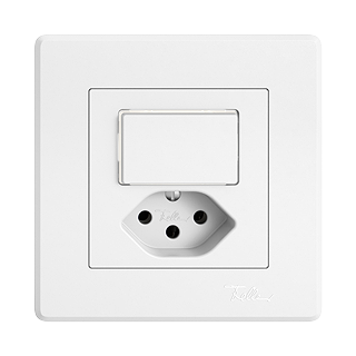 EDIZIO.liv • Piccola combinazione • Illuminato • Con lente laterale • Con interruttore e presa tipo 13 • 10 A, 250 V AC, L + N + PE • Con morsetti a innesto • Carico LED max: 100 W • Permutatore • 6/1 L • Con LED bianco 1,0 mA • Illuminazione di controllo • Sistema de fissagio SNAPFIX® • Profondità 39 mm • GMI.A • bianco • IP20 • 96 x 96 mm (93 x 93 mm)