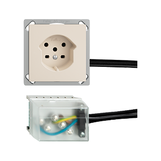 Steckdose Typ 15 • 10 A, 250 V AC, L + N + PE • 10 A, 440 V AC, 3 L + N + PE • Anschluss auf L1, L2, L3 • Einbautiefe 40 mm • FMTE • crema • IP20 • 70 x 70 mm • Mit Kabelanschlussadapter Ecobus power