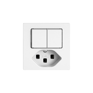 Kleinkombination • Unbeleuchtet • Mit Drucktaster, Druckschalter und Steckdose Typ 23 • 16 A, 250 V AC, L + N + PE • Mit Steckklemmen • Schliesser-Öffner + Wechsel • SNAPFIX® Befestigungssystem • farbneutral