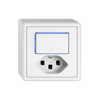 Kleinkombination • Beleuchtet • Mit Druckschalter und Steckdose Typ 23 • 16 A, 250 V AC, L + N + PE • Mit Steckklemmen • Aus/Wechsel • 3/1 L • Mit LED Blau 1,0 mA • Orientierungsbeleuchtung • SNAPFIX® Befestigungssystem • farbneutral