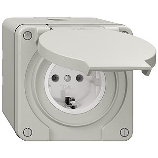 SCHUKO-Steckdose • 16 A, 250 V AC, L + N + PE • Mit Steckklemmen • Frontscheibe 60 mm, für Bohrung 60 mm • Anbauhöhe 70 mm • NAP.Q • lichtgrau • IP21 • 87 x 87 mm