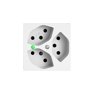 EDIZIO.liv • Dreifach-Steckdose Typ 13 • Beleuchtet • 10 A, 250 V AC, L + N + PE • Mit Steckklemmen • Orientierungsbeleuchtung / Spannungsanzeige • Mit LED Grün 1,0 mA • Parallel • SNAPFIX® Befestigungssystem • Einbautiefe 39 mm • G.A • weiss • IP20 • 60 x 60 mm