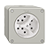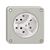 Dreifach-Steckdose Typ 13 • Beleuchtet • IP21 • 10 A, 250 V AC, L + N + PE • Mit Steckklemmen • Mit LED Grün 1,0 mA • Frontscheibe 60 mm, für Bohrung 60 mm • N.CO.Q • lichtgrau