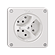 Dreifach-Steckdose Typ 13 • Beleuchtet • 10 A, 250 V AC, L + N + PE • Mit Steckklemmen • Mit LED Grün 1,0 mA • Frontscheibe 60 mm, für Bohrung 58 mm • Q • weiss