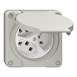 Dreifach-Steckdose Typ 23 • 16 A, 250 V AC, L + N + PE • Mit Steckklemmen • Frontscheibe 60 mm, für Bohrung 60 mm • 1 Dose getrennt • Einbautiefe 32 mm • NUP.Q • lichtgrau • IP21 • 87 x 87 mm