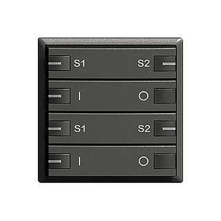 Abdeckset • Für zeptrion ON/OFF 2-Kanal Szene • Für Zentralstellen 3322… • Abdeckset komplett inkl Tasten • Mit LED • Vierfach-Taste • 2fach-Bedienung • Ohne Abdeckrahmen • F • schwarz • IP20 • 60 x 60 mm