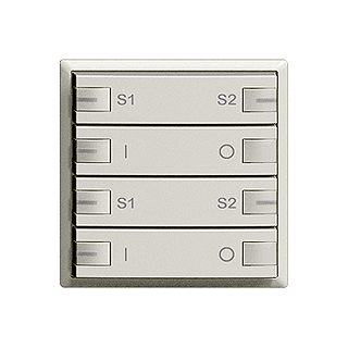 Abdeckset • Für zeptrion ON/OFF 2-Kanal Szene • Für Zentralstellen 3322… • Abdeckset komplett inkl Tasten • Mit LED • Vierfach-Taste • 2fach-Bedienung • Ohne Abdeckrahmen • F • hellgrau • IP20 • 60 x 60 mm